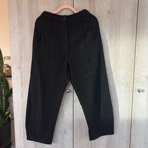 These full-length pants are made from a soft wool blend and detailed with front pintucks for a clean, elongated silhouette. Designed to sit high at the waist with a straight leg, they balance comfort and polish—ideal for both everyday wear and refined occasions.