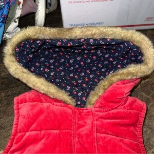 Vintage OshKosh Hooded Red Velvet Jacket Vest Youth Girls 18 months Floral Lined