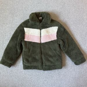 Wonder Nation Girls Plush Jacket M 7/8 Fuzzy Zip Up Spring Coat Soft Green Teddy