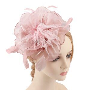 Condition - Brand New Floral Fascinator; Size - One Size; Color - Double Layered - 8.2"/Light Pink; Material - Satin and Feather; Style - Classic