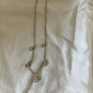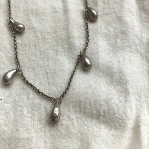 This Tiffany & Co. necklace is from the Elsa Peretti collection, made of sterling silver with a pendant featuring 5 teardrop shapes.