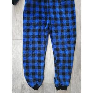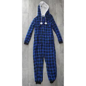 Women's Giggling Getup One Piece Pajamas Hooded Buffalo Plaid Blue Size Medium