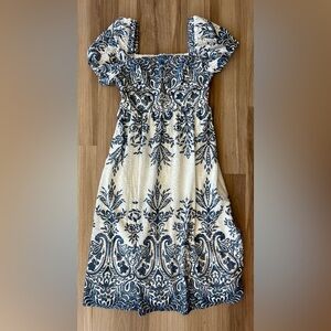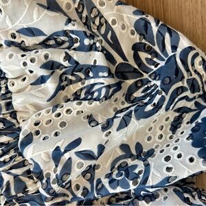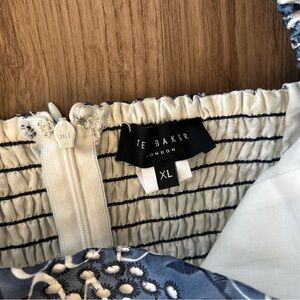 Ted Baker Print Eyelet Puff Sleeve Midi Dress Vintage Inspired Print Navy XL