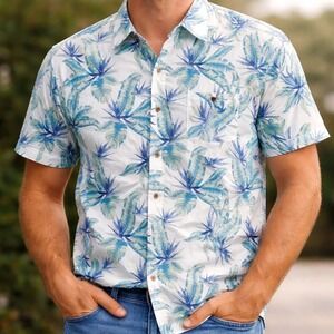 The NEW Havana Jim Floral Print Shirt in size medium is a stylish and fun addition to any man's wardrobe. This button-up shirt features a vibrant blue floral pattern, perfect for adding a touch of personality to a casual outfit. With short sleeves and a regular fit, this shirt is comfortable and versatile for various occasions. Show off your unique style with this eye-catching shirt from Havana Jim!