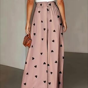 Heart ❤️ Print Pink Maxi Pants Wide Legged Pale Pink Woth Gray Hearts