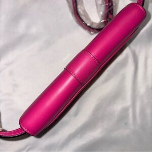 MCM unicorn bag, impossible to find in bright hit pink. Is commonly called the Patricia Bag, Wallet On Chain, but the smooth leather version was limited run and thus very hard to find. It measures approximately 7.5”x4.5”x1.5” and fits a phone plus a lipgloss etc — sizable for a “WOC”.