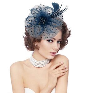 Condition - Brand New Floral Fascinator; Size - Medium; Color - Navy Blue; Material - Polyester; Style - Retro