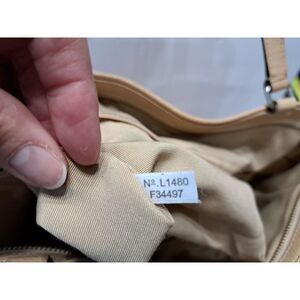 Please see all pictures. Have some flaws. The inside lining has been cleaned but it does have some stains and a small hole. The hang tag is not the original to this bag.