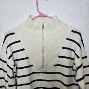 Draper James Quarter Zip Sweater in Mariner Stripe, size XS