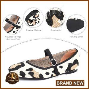 Knit Ballet Flats with Adjustable Ankle Strap Square Toe Washable