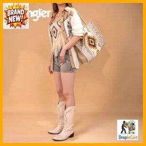 Brand new, never used, and in flawless condition — this large western-style tote combines genuine leather tooling with an Aztec tapestry pattern for a unique and statement-making look. Perfect for daily use, travel, or as a standout accessory.