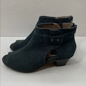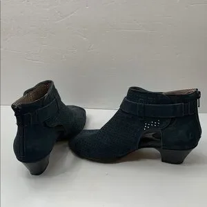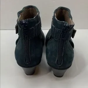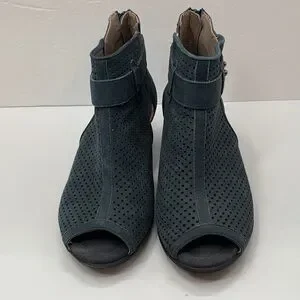 Earth Keri Perforated Nubuck Peep Toe Heeled Ankle Boots Moroccan Blue Size 7.5