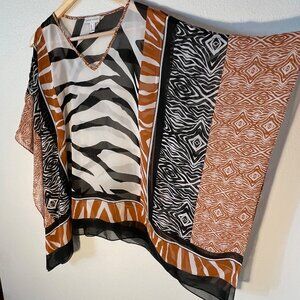 Susan Graver Animal Print Chiffon Scarf Top Size M
