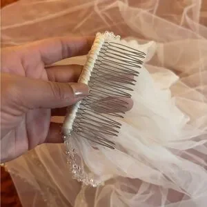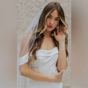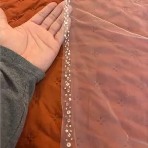 120 inch light ivory veil with sparkle and pearl trim.