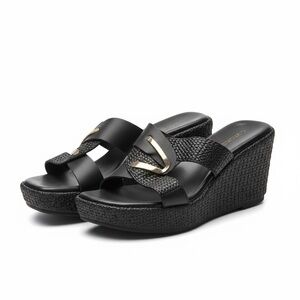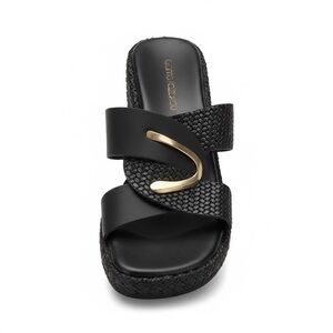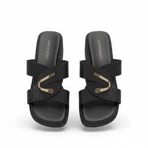 Elegant, authentic Gianna Kazakou handmade sandals from Greece. Beautifully crafted in black woven leather with gold accent hardware, these slip-on slides are a timeless addition to any wardrobe. Chic, minimal, and comfortable — perfect for warm weather or resort wear.