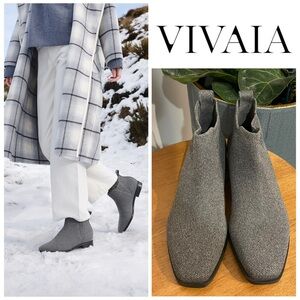 NWOT Vivaia Square-Toe Slip-On Chelsea Ryan Boots in Rich Grey Wool
