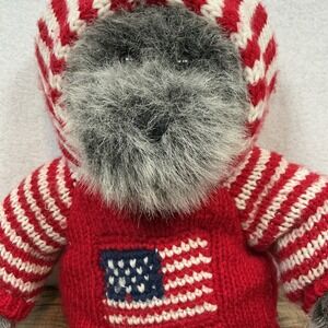 Dillard's USA Plush Stuffed Gray Bear Patriotic Flag Red Sweater Hoodie 16" in good pre-owned condition. The Dillard's USA Plush Stuffed Gray Bear with a Patriotic Flag Red Sweater Hoodie is a 16-inch bear that is perfect for patriotic occasions. This one-piece set includes a sweater designed for a 16-inch bear, featuring a gray color and patriotic theme. The brand Dillards is known for its quality and this plush bear is a great addition to any bear collection, representing the American spirit with its flag and patriotic design. Perfect for display or play, this bear is a unique and charming piece for any patriotic enthusiast.