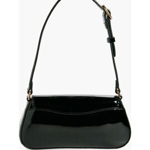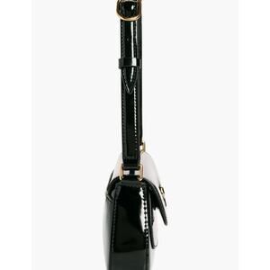 Polished hardware makes a signature statement at the flap of a structured shoulder bag fitted with an adjustable strap for comfortable wear.