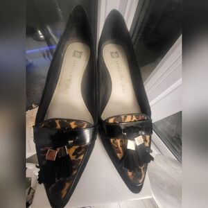 Anne Klein Women's Suede Black and Leopard Kitten Heels