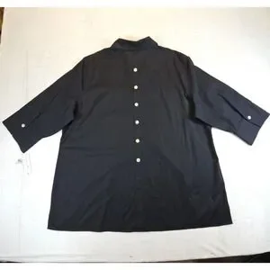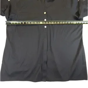 The Foxcroft Wrinkle Free Button Up Shirt is a versatile and stylish addition to any woman's wardrobe. Made from a comfortable and durable blend of Lycra Spandex and Cotton, this shirt features a solid black color and a classic collared neckline with button closure. The 3/4 sleeves and casual sleeve type make it perfect for everyday wear, whether for work, travel, or casual outings. With a size 20W and Plus size type, this shirt offers a shaped fit for a flattering look. The wrinkle-resistant material ensures easy care and maintenance, making it a practical and timeless desk-to-dinner staple.