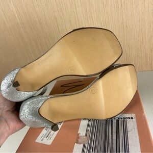 Wild Pair Bethie Silver Glitter Two-Piece Heels Size 9 NIB Prom Wedding