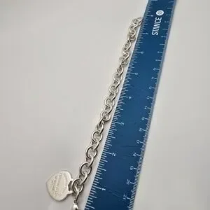 Tiffany Co Return To Tiffany Heart Tag Charm Sterling Silver Bracelet, 7 3/4" long for sale.
