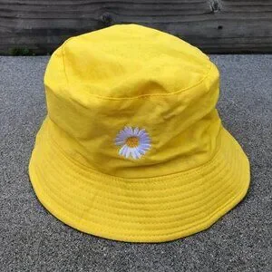 Reversible Bucket Hat Daisy Flower Yellow Khaki Beige Cap One Size Unisex Adult