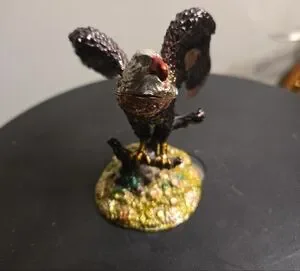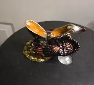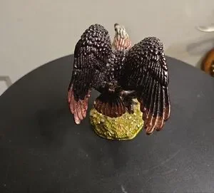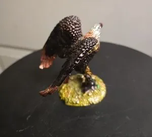 This elegant bird figurine Objet d'art Release #20 "Majesty" Bald Eagle Perch Jeweled Trinket Box '08 features a striking black and gold design, perfect for adding a touch of sophistication to any space. Ideal for bird enthusiasts and collectors alike. Make an offer. You deserve this.