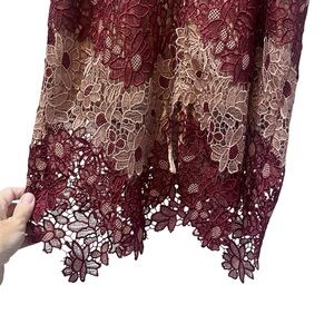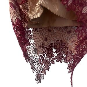 Bardot Burgundy and Beige Lace Overlay Sheath Dress Size 8