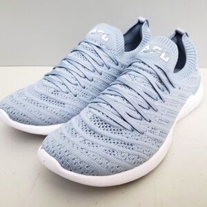 Light blue athletic shoes by APL. Features a breathable knit design.