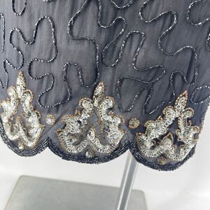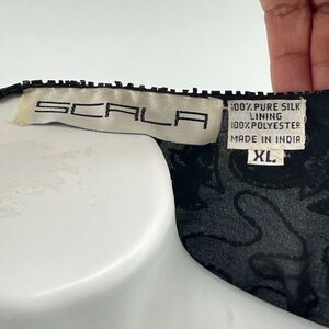 Vintage SCALA Silk Beaded Sequin Evening Glam Jacket Black Open Front XL