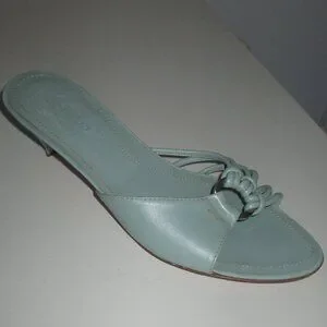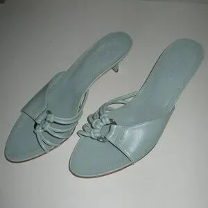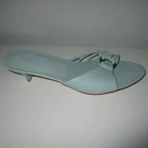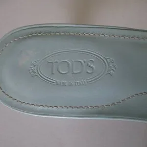 TOD's Womens Mint Green Italian Leather Sandal w/1.5" Heel. Size 7.5M. Leather uppers are in excellent condition, leather soles are thoroughly scuffed but not "worn", and the heels are flat & true. Made in Italy.