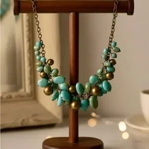 🧚🏻♀️ Turquoise Blue & Bronze Statement Necklace NWOT Adjustable 17–20”