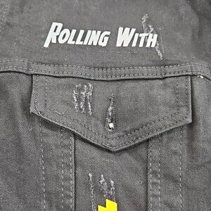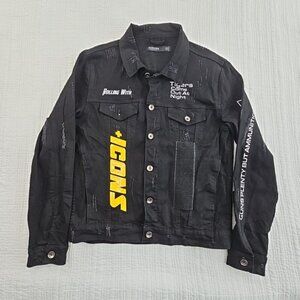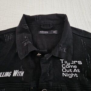 Hudson Outerwear Stretch Denim Jacket Men's Medium Black Long Sleeve Logos EUC