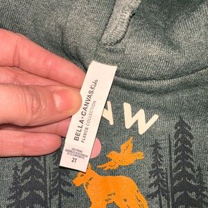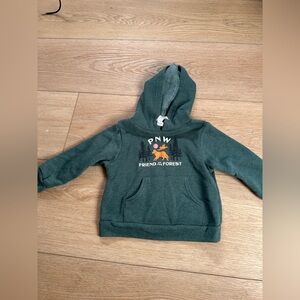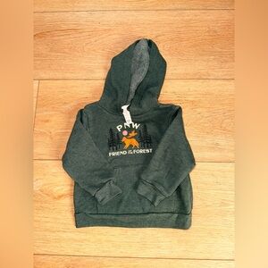 Charming green hoodie with forest and animal design. Ideal for little explorers. Soft and comfortable.