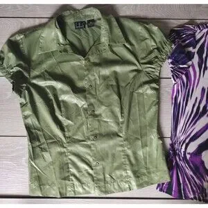 INC - Petite - 10P - 100% polyester- green button down blouse