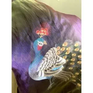 Vintage Anis USA Iridescent Peacock Jacket Kimono L Silk Top Boho Slow Phoebe