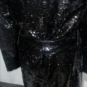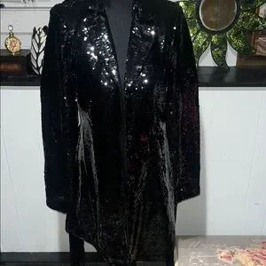 Dazzling black sequin blazer. Ideal for glamorous occasions. Enhances any ensemble with shine.