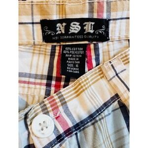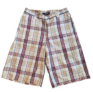 NSI Vintage Boys Plaid Cargo Shorts Size 16 Beige Red Black Cotton Blend