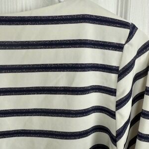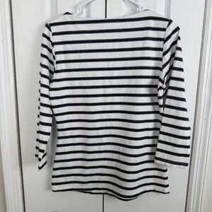 J.McLaughlin XS Striped Boatneck Top Metallic Gold Button Accent Navy White