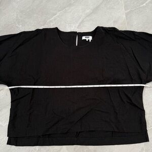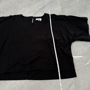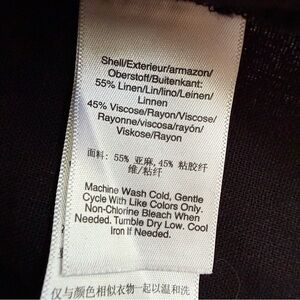 Good condition - Women’s DKNY Pure Dropped Shoulder Linen Blend Top Black. Has button and loop closure behind the neck. Color: black. Size: XL.