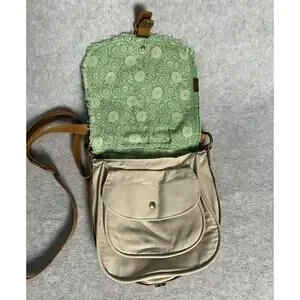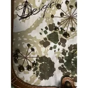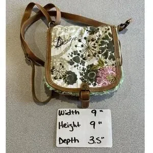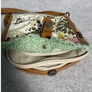 Desigual Canvas Crossbody Bag Floral Embellished Brown Leather Strap Trim Spain