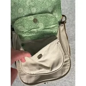 Details: Crossbody, magnetic snap closure at bottom, mesh back pocket, inner flap pocket, main pouch has zip close pocket