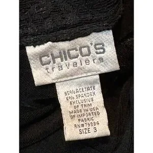 Chico's 3 Travelers Black Dress Lace V-Neck Midi Sz 14/16 Wrinkle Free Packable