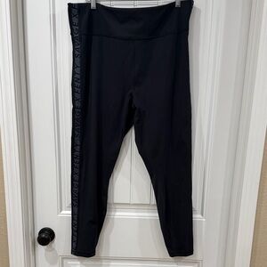Sleek black leggings with bold logo detail. Ideal for workouts or casual wear. NWOT