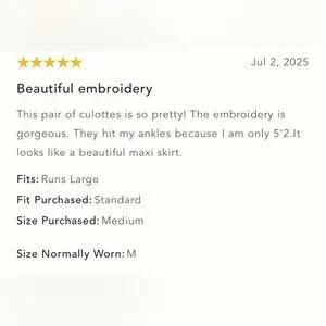 NWT Size M - Anthropologie 100% Cotton Embroidered Culottes (NWT US$ 138)