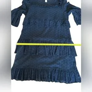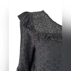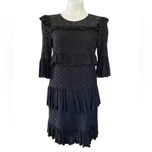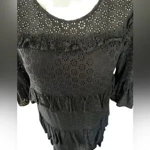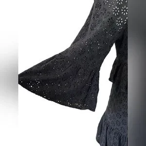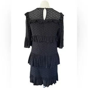 MADEWELL | Black Eyelet Waterlily Ruffle Round Neck Tiered Mini Dress Size 6