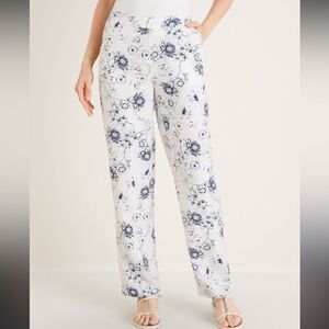 Chico’s Linen Floral-Print High Rise Straight-Leg Pants Size 8R