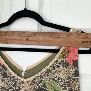 SIGRID OLSEN Sport Sleeveless Dress Green Floral Sz 10 Long Lace Trim V Neck Vtg