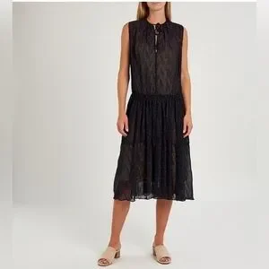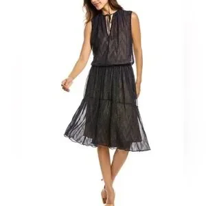 Vince Starry Dot Tiered Midi Dress in Blue Size Large